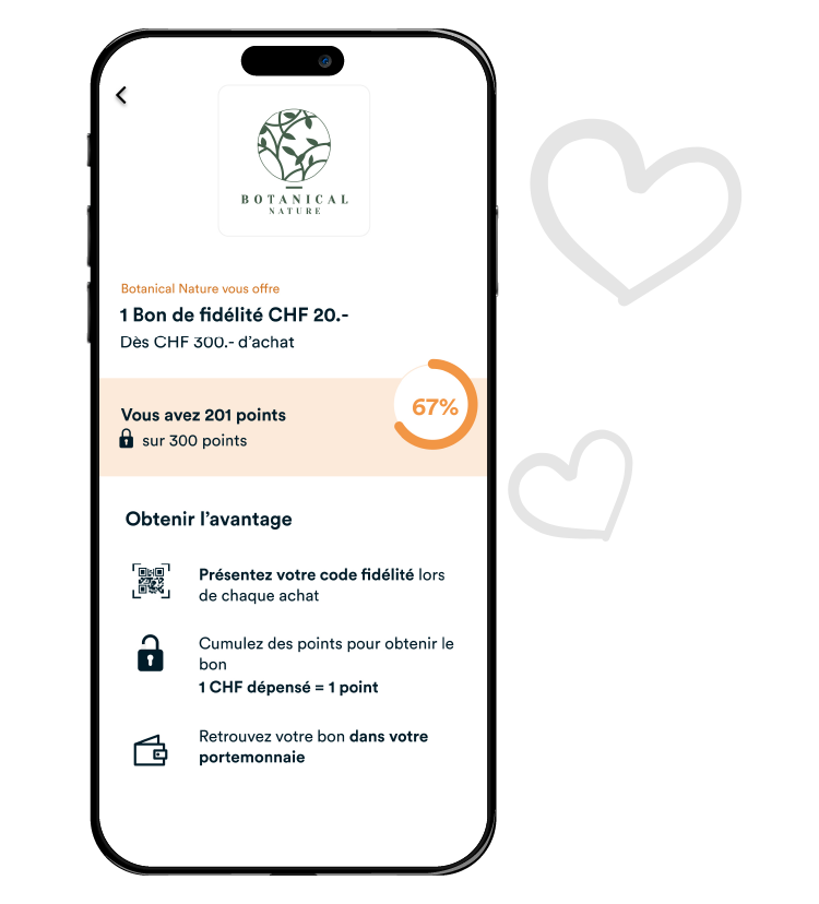 A chaque achat, votre client cumule des points sur l’app mobile Mercoria. Après avoir dépensé un montant de votre choix, il reçoit un bon qui se débloque automatiquement.